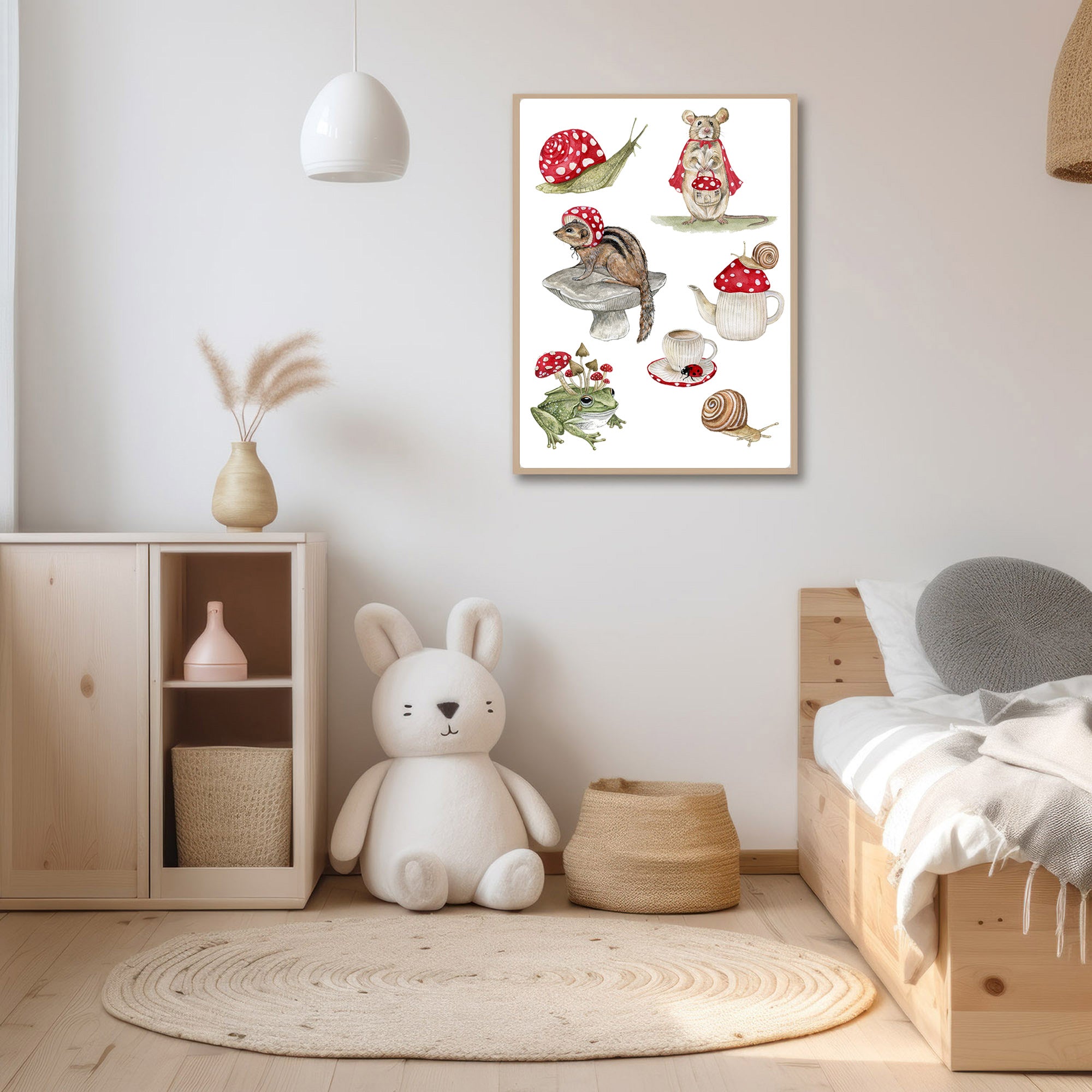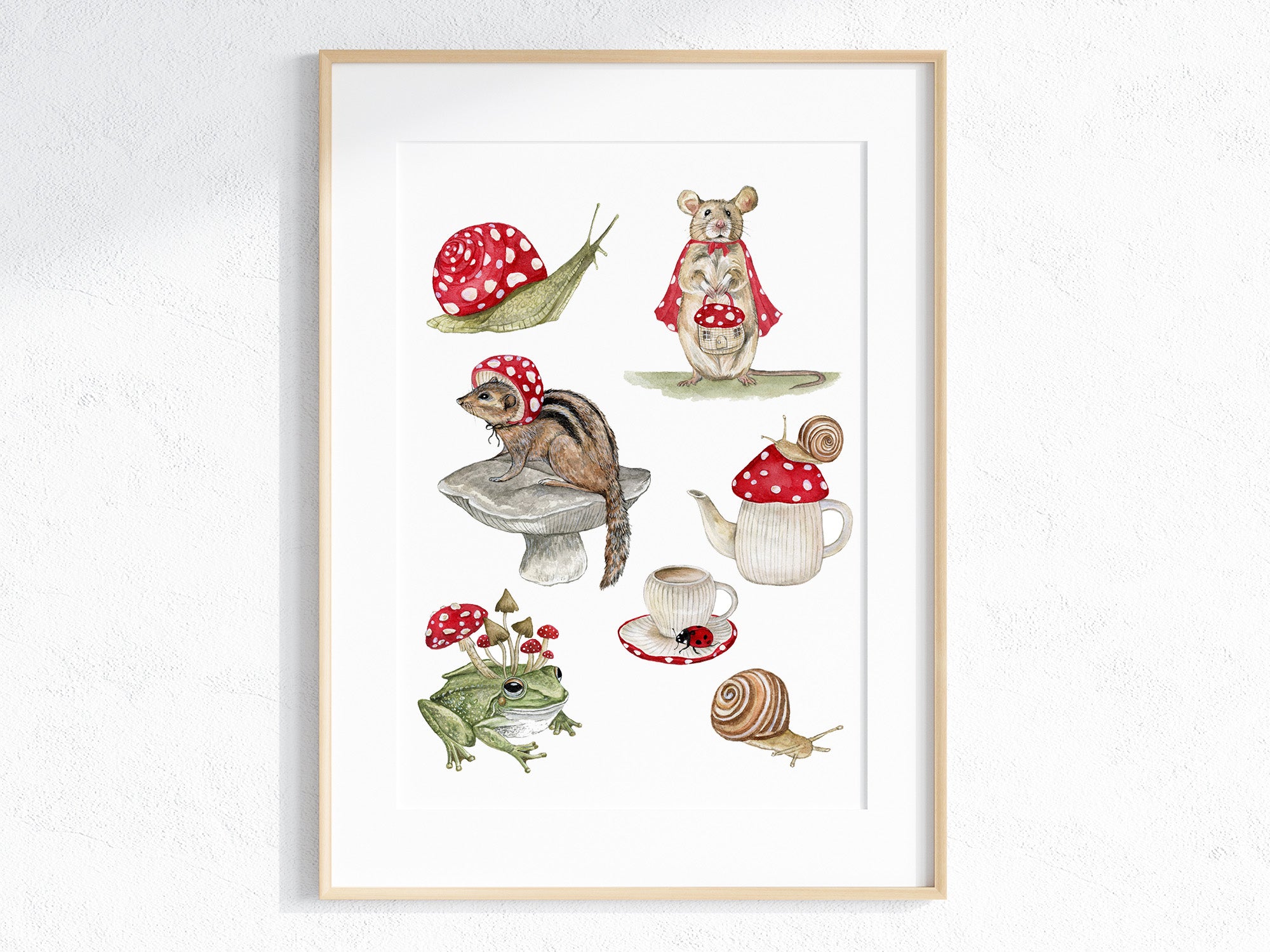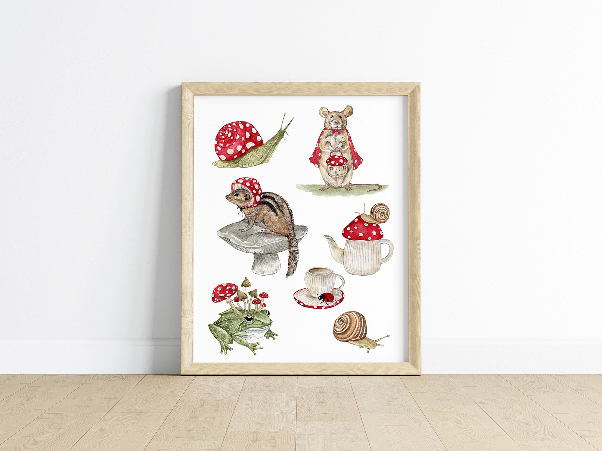 Immerse yourself in the enchanting realm of nature with our captivating "Enchanted Grove" art print collection, delicately crafted by our watercolor artist Anne Fillion. The entire collection features earthy tones and was hand painted with rich and creamy high quality watercolors . Witness the graceful dance of animals, their essence captured in hues of forest greens, dusky blues, and soft earthy browns. From the mystical gaze of a wise owl to the tranquil presence of a serene peacock, each piece invites you to embrace the magic of the natural world.