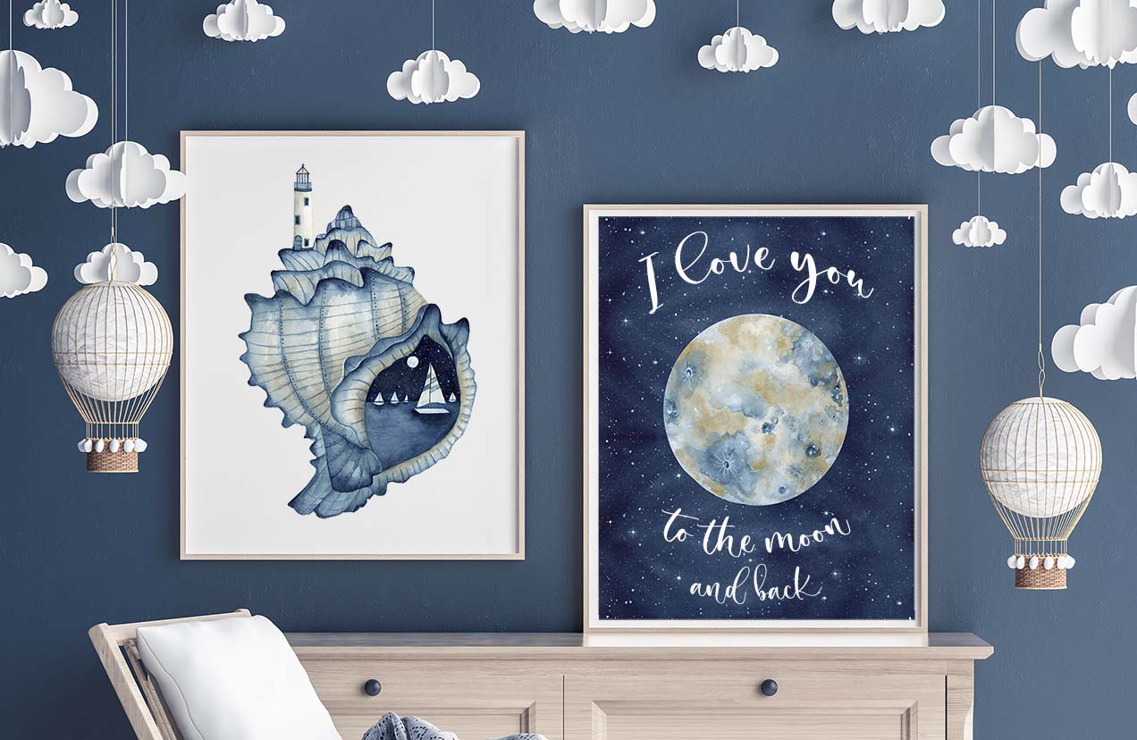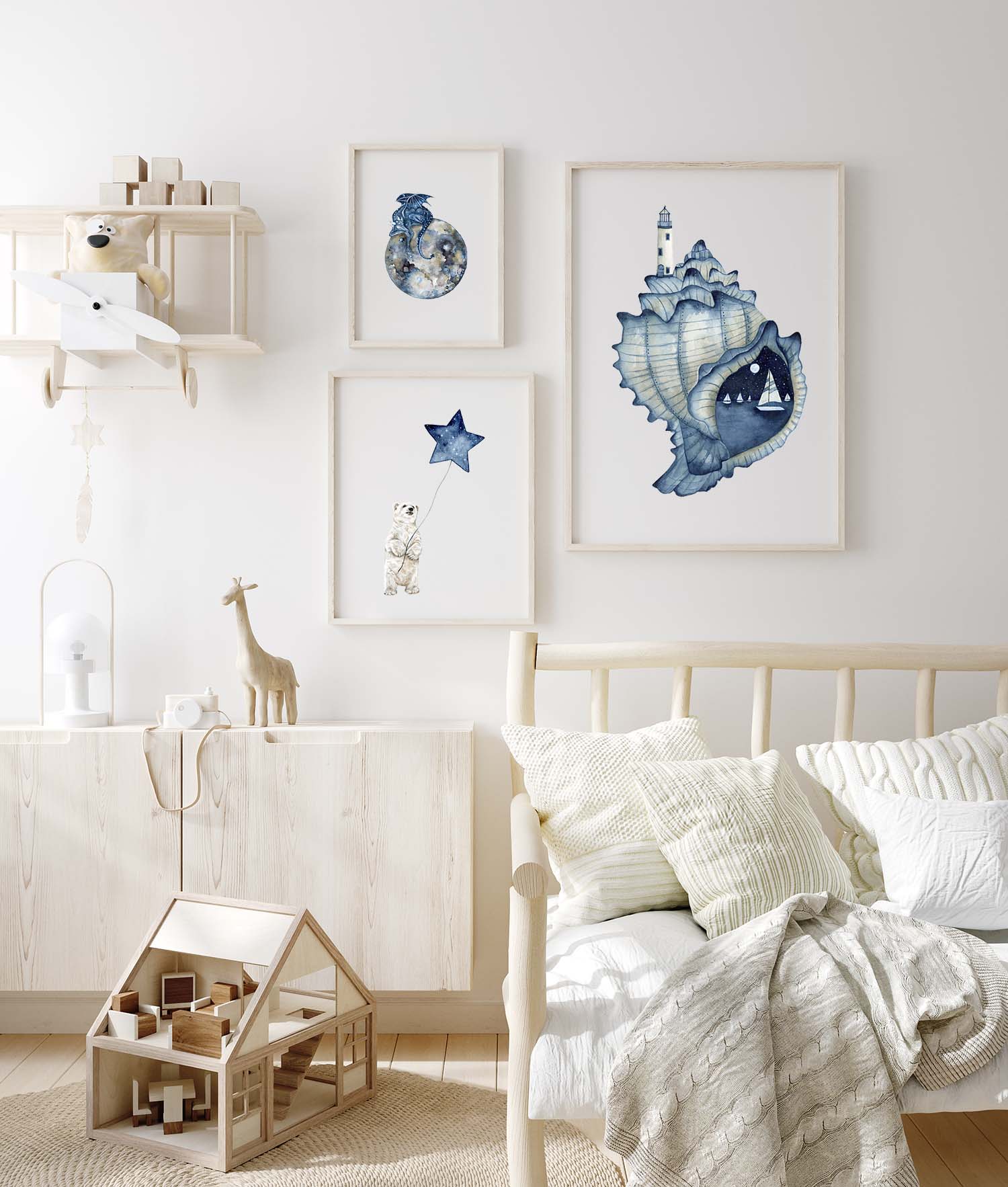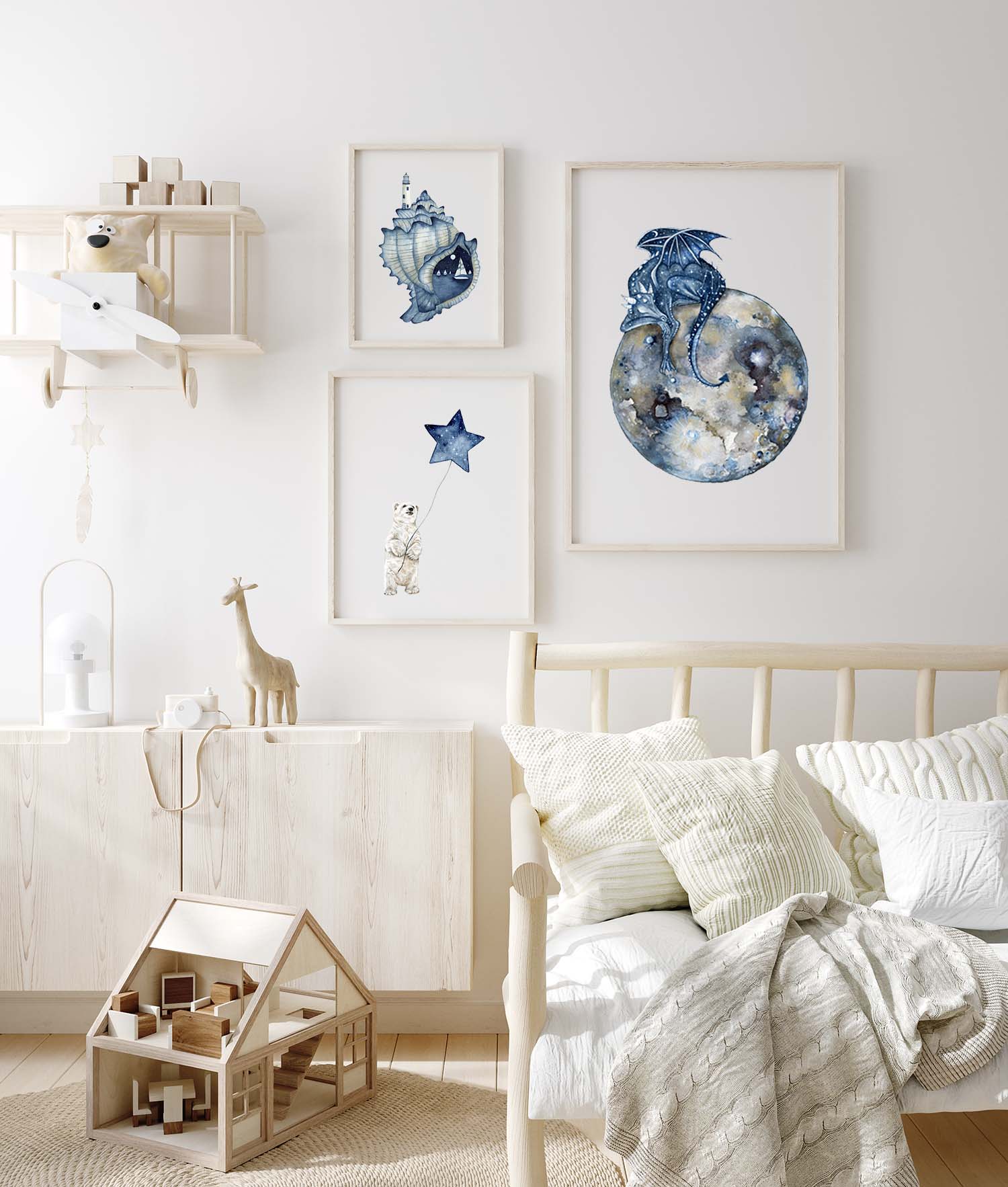 Embark on a celestial journey of tranquility and wonder with our "Sleeping Under the Stars Collection." This enchanting ensemble of prints invites your little ones to embrace the serenity of the night sky as they drift into dreams under the gentle glow of the moon. With this collection, the night becomes a canvas for their imagination, and dreams take flight in the ethereal glow of the moon and stars. Transform your child's bedroom or inspire their next imaginary adventure by adding some of your favorite enchanting prints to their walls.